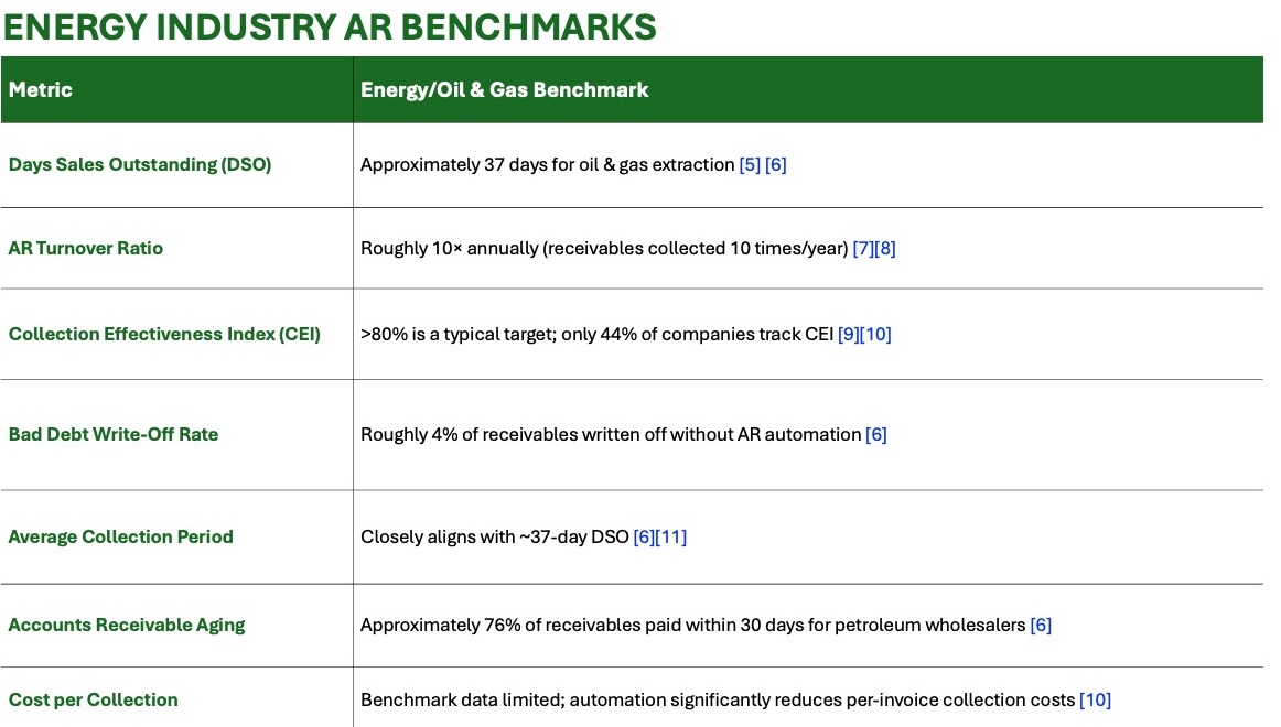 Figure 2: Common Energy Industry AR Benchmarks. OFS Portal, 2025.